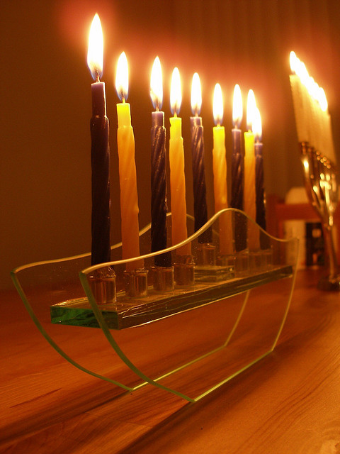 Tonight will be the fifth night of Chanukah, but this picture is from some past year's eighth night.